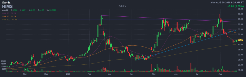 Hims operates in the booming telehealth and wellness markets, encompassing prescription medications, OTC products, and digital care across multiple health domains. The U.S. telehealth market is projected to grow significantly, with increasing consumer preference for remote care. Hims’ strategy — personalization, digital-first delivery, and multiple specialty verticals — positions it well. They project revenue to reach $6.5 billion by 2030, with EBITDA of $1.3 billion, highlighting massive long-term potential.
