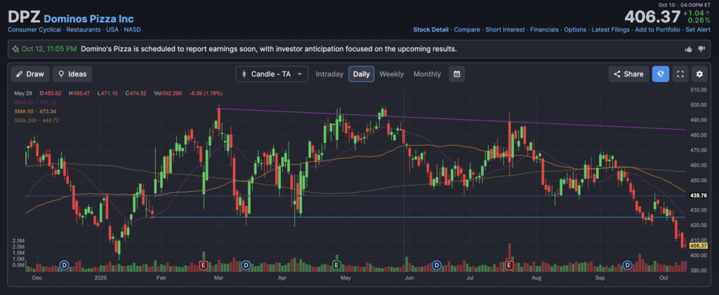 Looking ahead into late 2025 and 2026, margin pressure is likely due to commodity costs, delivery/digital investments, and wage inflation. However, growth levers include expansion of third-party delivery partnerships (e.g. DoorDash), international network growth, and further digital optimization. (Domino’s shifted from Uber exclusivity to also partnering with DoorDash; that may unlock incremental reach.)