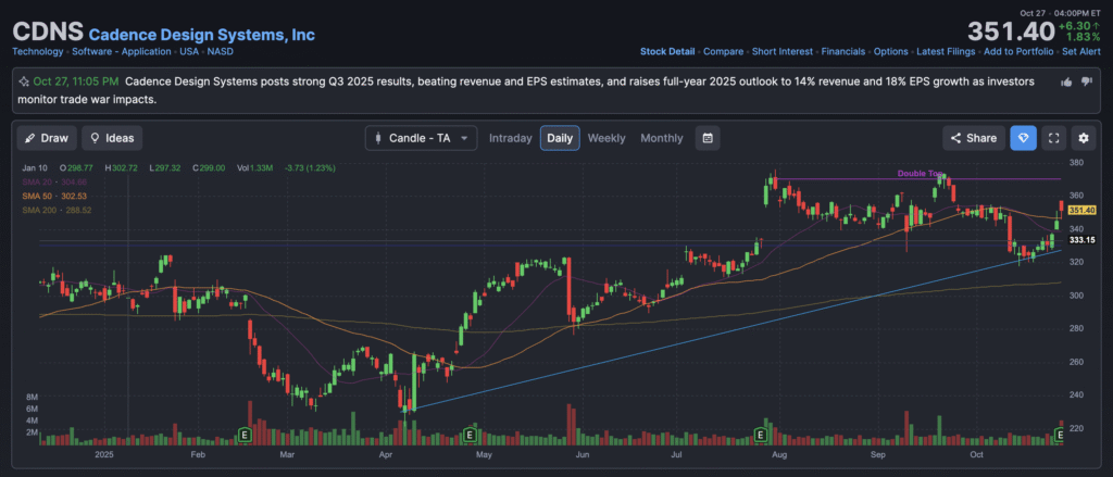 - Cadence stands to benefit from secular tailwinds in semiconductor design complexity, AI accelerator design, chiplet/integration, advanced packaging, and system-level simulation.