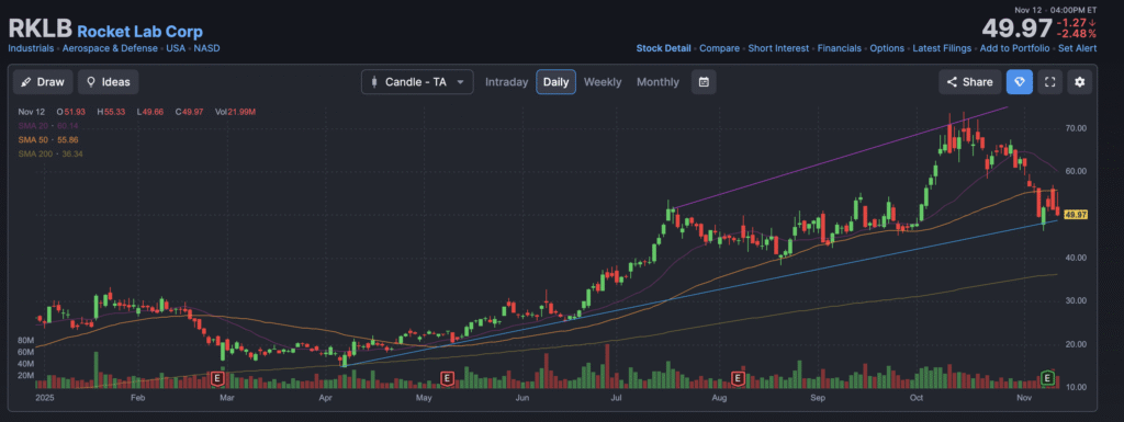Rocket Lab Corporation is a US-listed aerospace and launch services company that designs, manufactures and launches rockets and satellites. It primarily serves small-satellite launch markets with its “Electron” rocket and is developing the larger “Neutron” vehicle as part of its ambition to be a full-stack space company. It also builds satellites and space systems via its “Photon” satellite bus, and has operations spanning New Zealand, the United States and Europe. With the rise in demand for small-satellite launches, global defence/government contracts and commercial constellations, Rocket Lab positions itself as a “launch + space systems” play rather than just a launch shop. It remains unprofitable as it invests heavily in scale, infrastructure and next-gen launch capability, so the market is betting on future growth and margin improvements rather than current earnings.