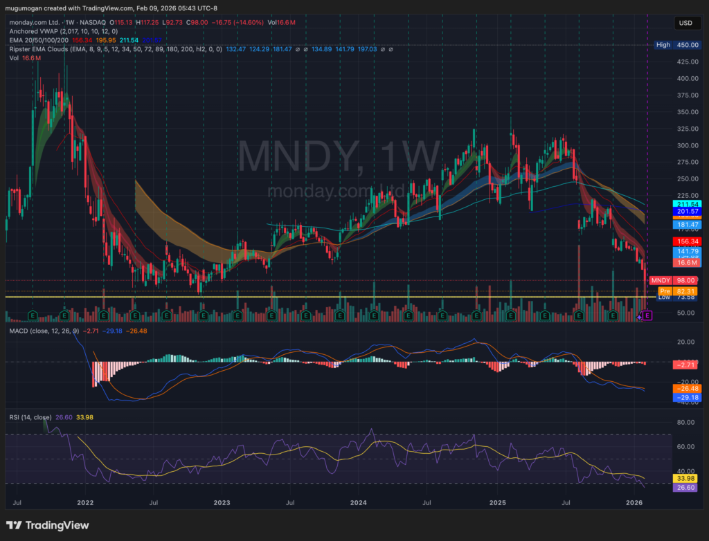 Monday.com is a cloud-based work management and productivity software company founded in 2012 and headquartered in Tel Aviv, Israel. The company provides a highly configurable Work OS that allows teams to plan, track, and execute projects across functions such as product development, marketing, sales, CRM, IT, and operations. Monday.com monetizes primarily through seat-based SaaS subscriptions with tiered pricing and has increasingly pushed upmarket into larger enterprise accounts over the past several years. For full-year 2025, the company generated approximately $1.38 billion in revenue, maintaining strong growth while expanding operating leverage. Its primary competitors include $ASAN Asana, Smartsheet $SMAR, Atlassian $TEAM, and ClickUp, all of whom operate in the increasingly competitive collaborative work management category.