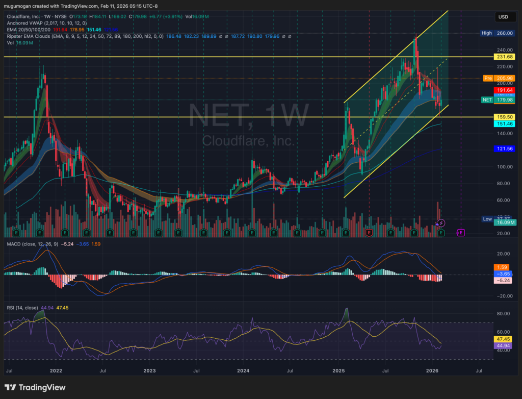 Cloudflare’s most recent earnings were reported in early February 2026 for Q4 2025. The company delivered revenue of approximately $380 million, up roughly 28–30% year over year, ahead of analyst expectations. Adjusted EPS came in above consensus at roughly $0.18–$0.20, reflecting continued operating leverage. Management guided Q1 2026 revenue in the range of roughly $390–$395 million and full-year 2026 revenue toward the mid-$1.6 billion range, implying sustained high-20% growth. Importantly, large customer growth and $100K+ ARR expansion remained strong, reinforcing enterprise traction.